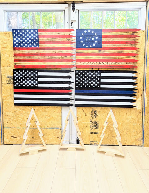 At Wood Creations by Joe, we specialize in crafting a wide range of wooden creations, including cedar planters of any size, wood flags of any kind, and seasonal gifts such as Christmas trees for windows and mantles. Each piece is meticulously crafted to bring out the natural beauty of the wood, combining artistry and functionality.